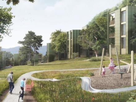 Anschliessend führte die Grundeigentümerschaft einen Studienauftrag mit 5 Teams durch. Das Wesen der Aufgabe bestand darin, im Dialog mit der Gemeinde und dem Beurteilungsgremium ein ortsbauliches Gesamtkonzept zu finden, welches sich optimal in die wertvolle Landschaft (Topografie, Waldrand, Baumbestand) einfügt. Weiter waren basierend auf dem ortsbaulichen Gesamtkonzept konkrete Projektvorschläge für die Neubauten einer ersten Bauetappe zu entwickeln. Zurzeit läuft das Gestaltungsplanverfahren und die Projektierung der 1. Etappe.