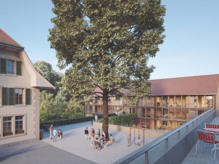 Die Stiftung Brüttelenbad bietet geistig und mehrfach beeinträchtigten, erwachsenen Menschen einen Lebensraum mit Wohn-, Arbeits- und Beschäftigungsmöglichkeiten. Mit der Umgestaltung und Erneuerung des bestehenden Hauptgebäudes und der Umgebung werden diese bautechnisch ertüchtigt und den Anforderungen einer zeitgemässen Institution angepasst. Ein Neubau für drei Wohngruppen verbessert die räumlichen und betrieblichen Verhältnisse der gesamten Institution und hilft, die vielfaltigen Nutzungen zu entflechten.